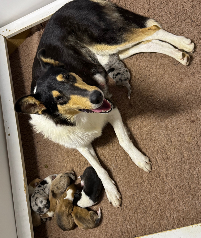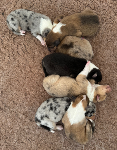 7 beautiful puppies were born Nov 5, 2025. We have 5 girls (one tri, one blue merle and 3 sable merles